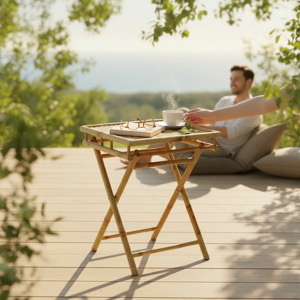 Mang hơi thở của sự mộc mạc và tinh tế, bàn trà tre tự nhiên là sản phẩm được chế tác hoàn toàn từ tre nguyên chất, tạo nên vẻ đẹp nhẹ nhàng, tinh giản nhưng vẫn sang trọng.