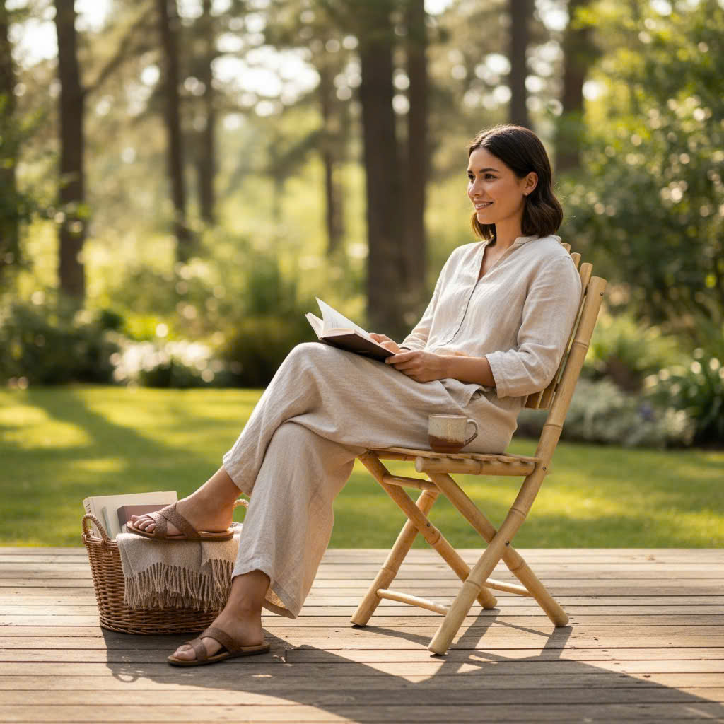 Ghế gập bằng tre/gỗ tự nhiên có thiết kế tiện lợi, dễ dàng gấp gọn và di chuyển, lý tưởng cho các buổi dã ngoại, cắm trại hoặc không gian ban công nhỏ.